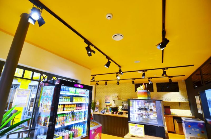 LED svítidly byly osvětleny také prostory občerstvení Banana Café kde jsme instalovaly lustry a lištové reflektory.