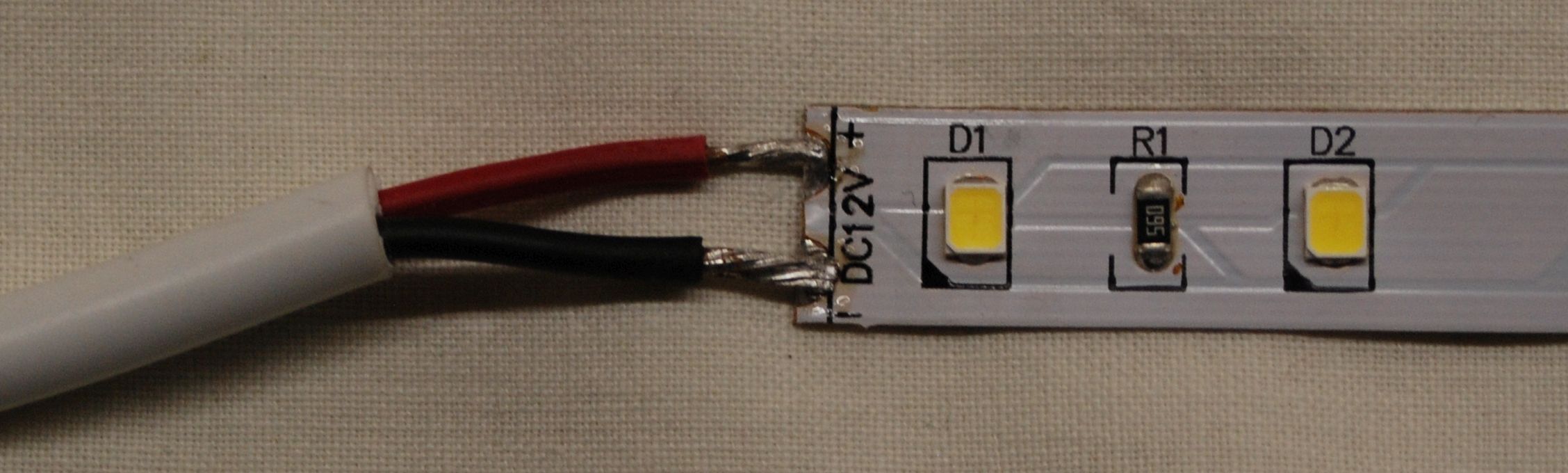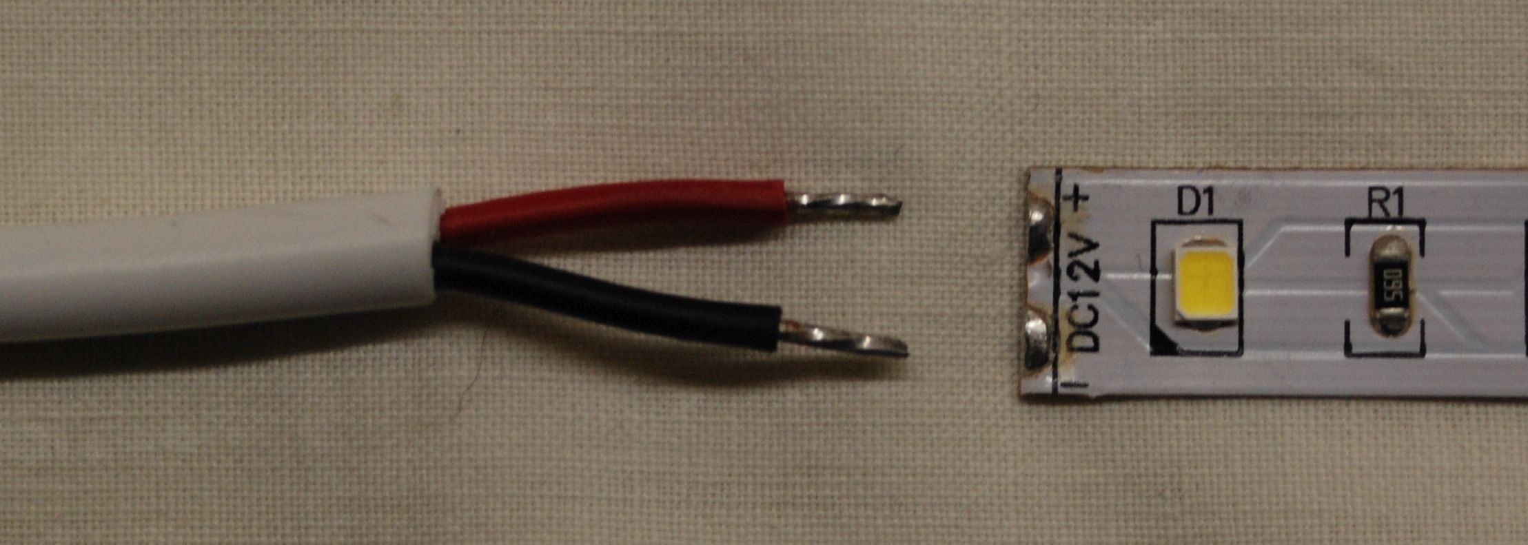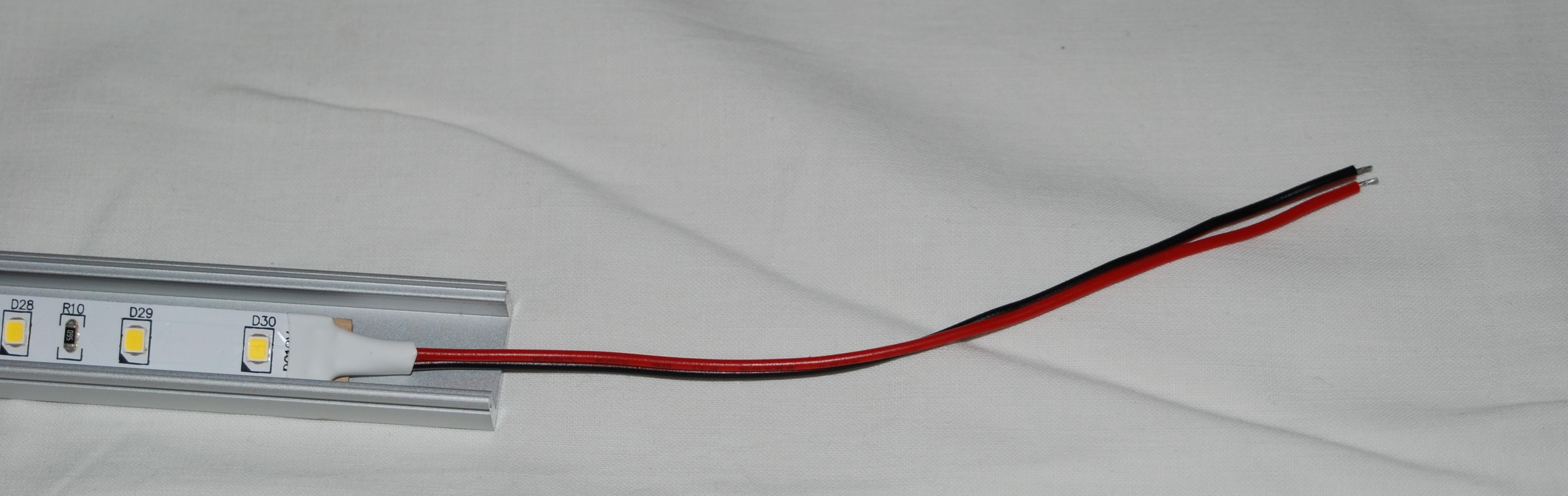 LED pásek nemusí mít vyvedené kabely. Pokud jsou u LED pásku (záleží z jaké části role je odebrán) jsou dlouhé cca 10cm. Je však možné, že chcete zvolit jiný způsob zapojení. Pásek také bude dle typu potřeba propojit se zdrojem. Tyto komponenty naleznete zde.