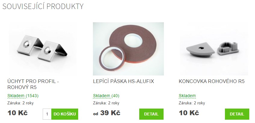 Důležitým doplňkem jsou také koncovky profilu. Možná využijete také úchyty. U každého profilu jsou k nalezení v záložce: Související zboží.