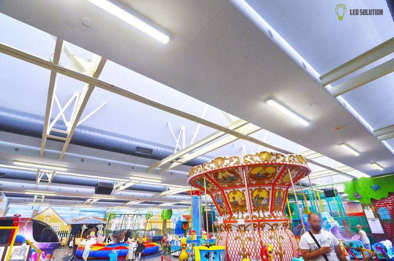 Do Lunaparku v zábavním centru Babylon Liberec jsme instalovali výkonná zářivková svítidla o délce 150cm a výkonu 80W. Svítidla musela splňovat náročné požadavky na odolnost, kterou jsme v některých případech podpořili drátěným krytem.