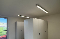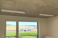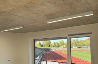 Použili jsme kombinaci úsporných LED panelů a průmyslových svítidel, které zvládnou každodenní tréninkový nápor i vysokou vlhkost v zázemí. Na venkovní osvětlení budovy jsme použili LED pásky s vysokým stupněm krytí a večer díky nim stadion září moderním a stylovým dojmem.