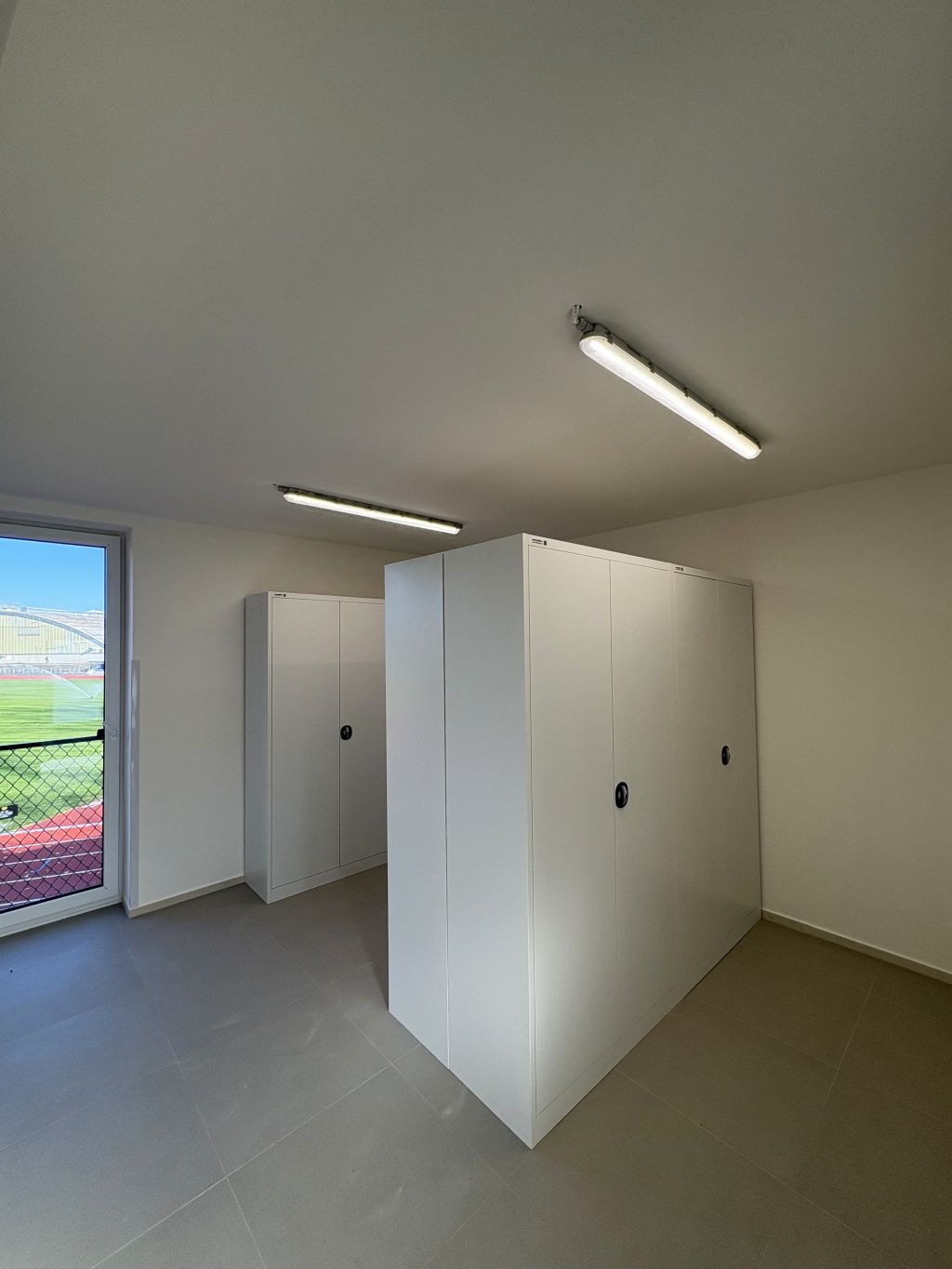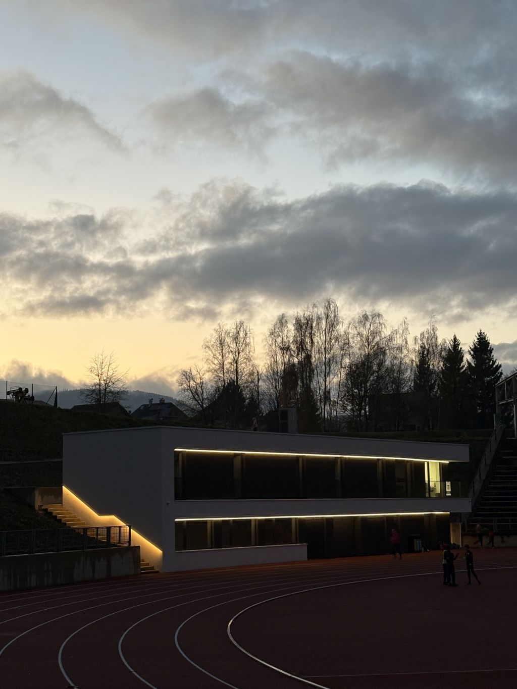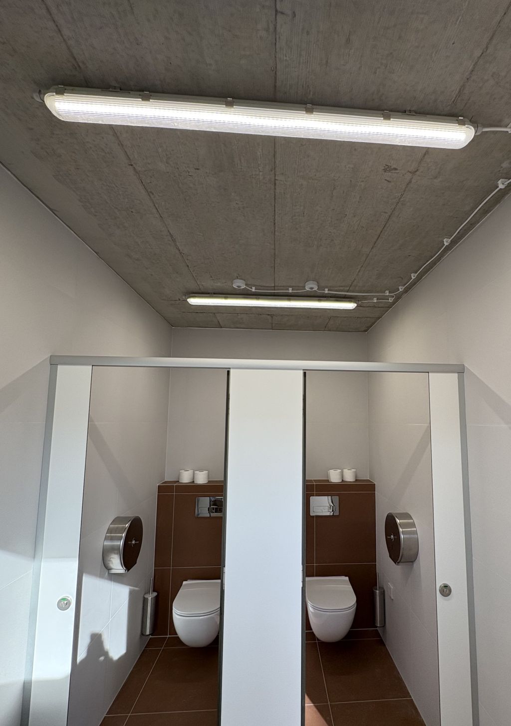 Na atletickém stadionu v Liberci jsme se postarali o kompletní osvětlení nového zázemí. Protože sportovci musí vidět nejen na trať, ale i do tašky v šatně, realizovali jsme moderní LED osvětlení všech prostor – od šaten, sprch a posilovny až po venkovní osvětlení budovy.