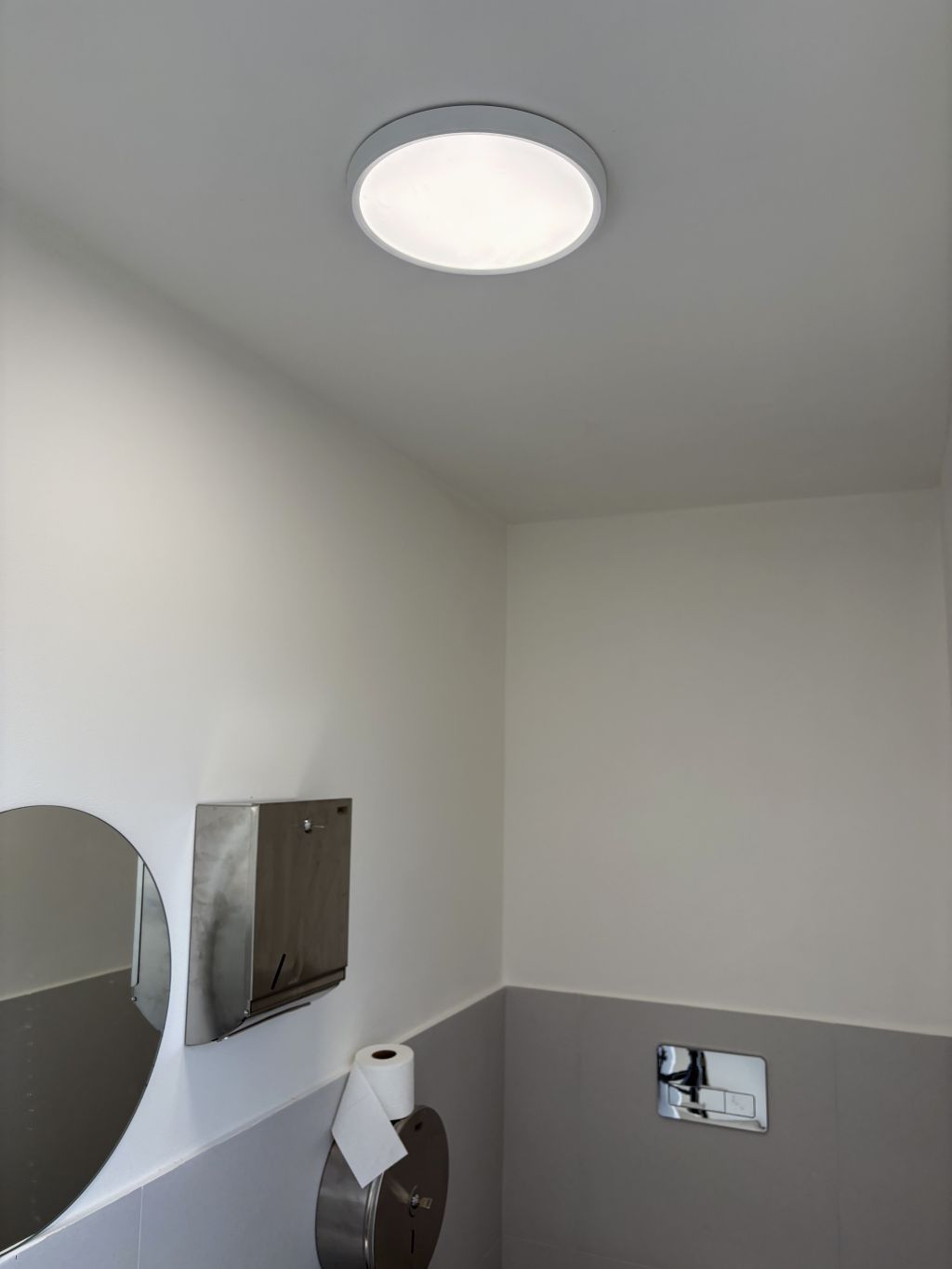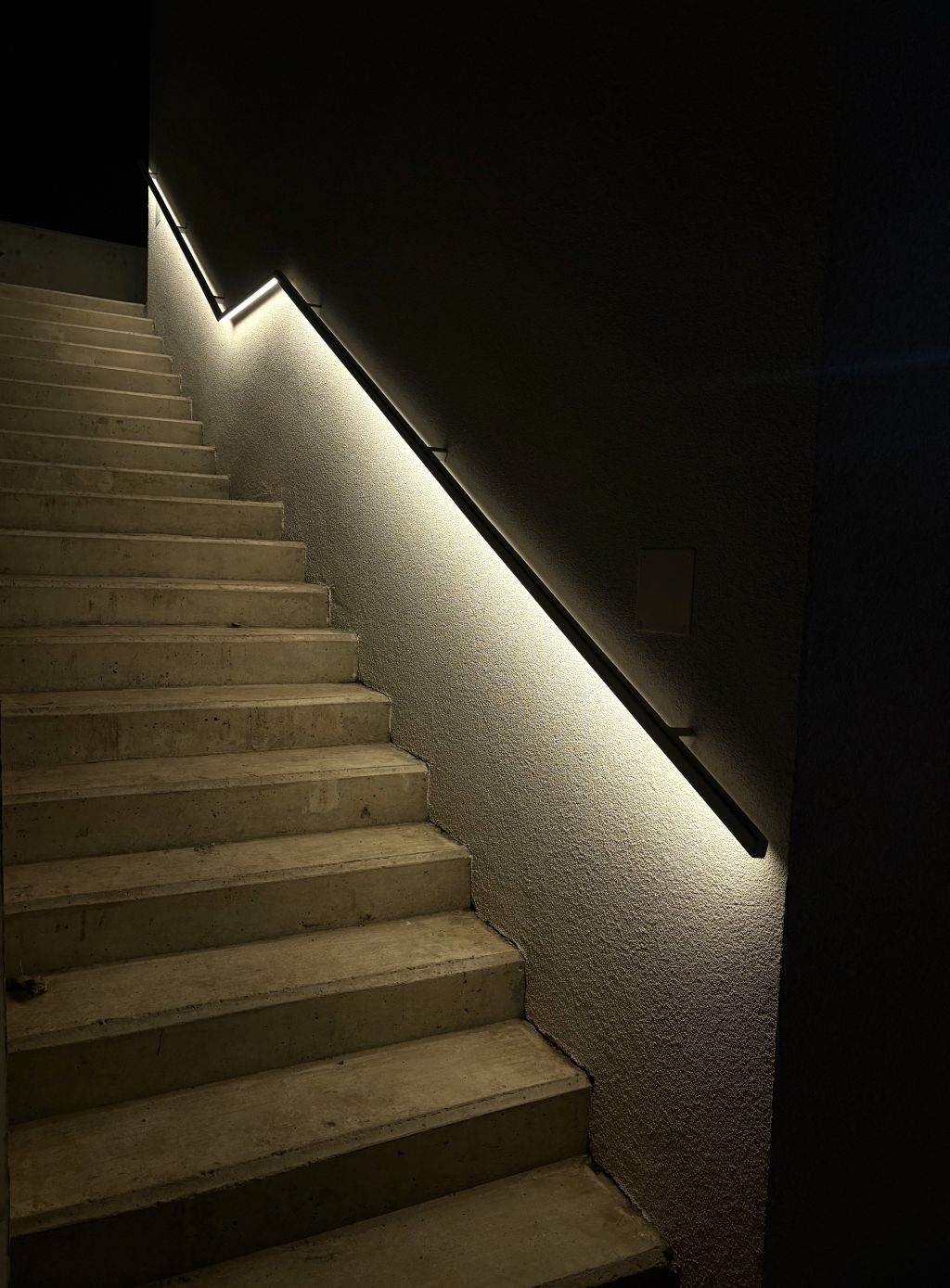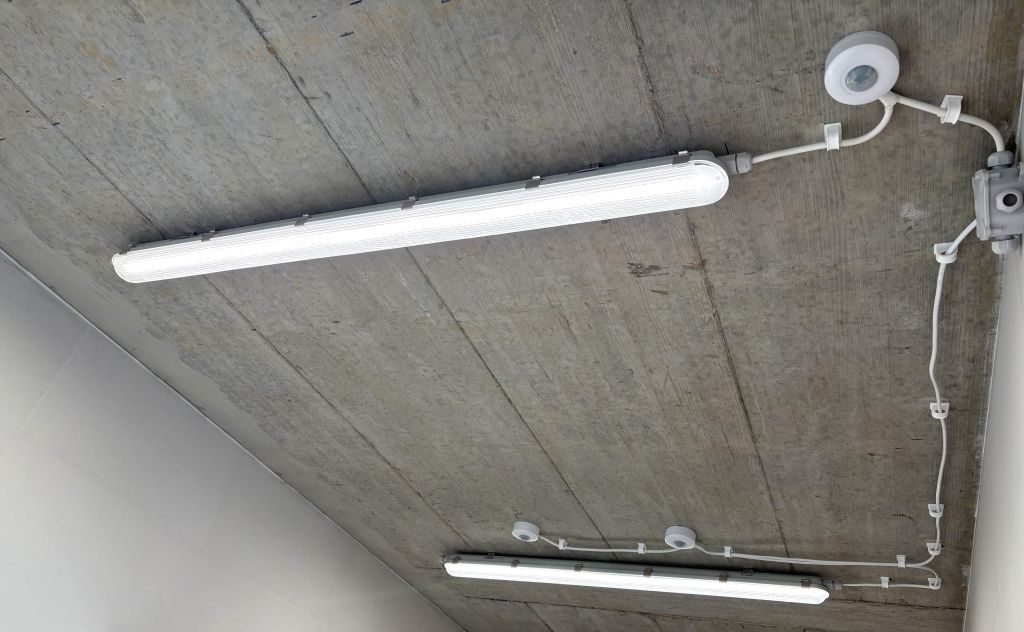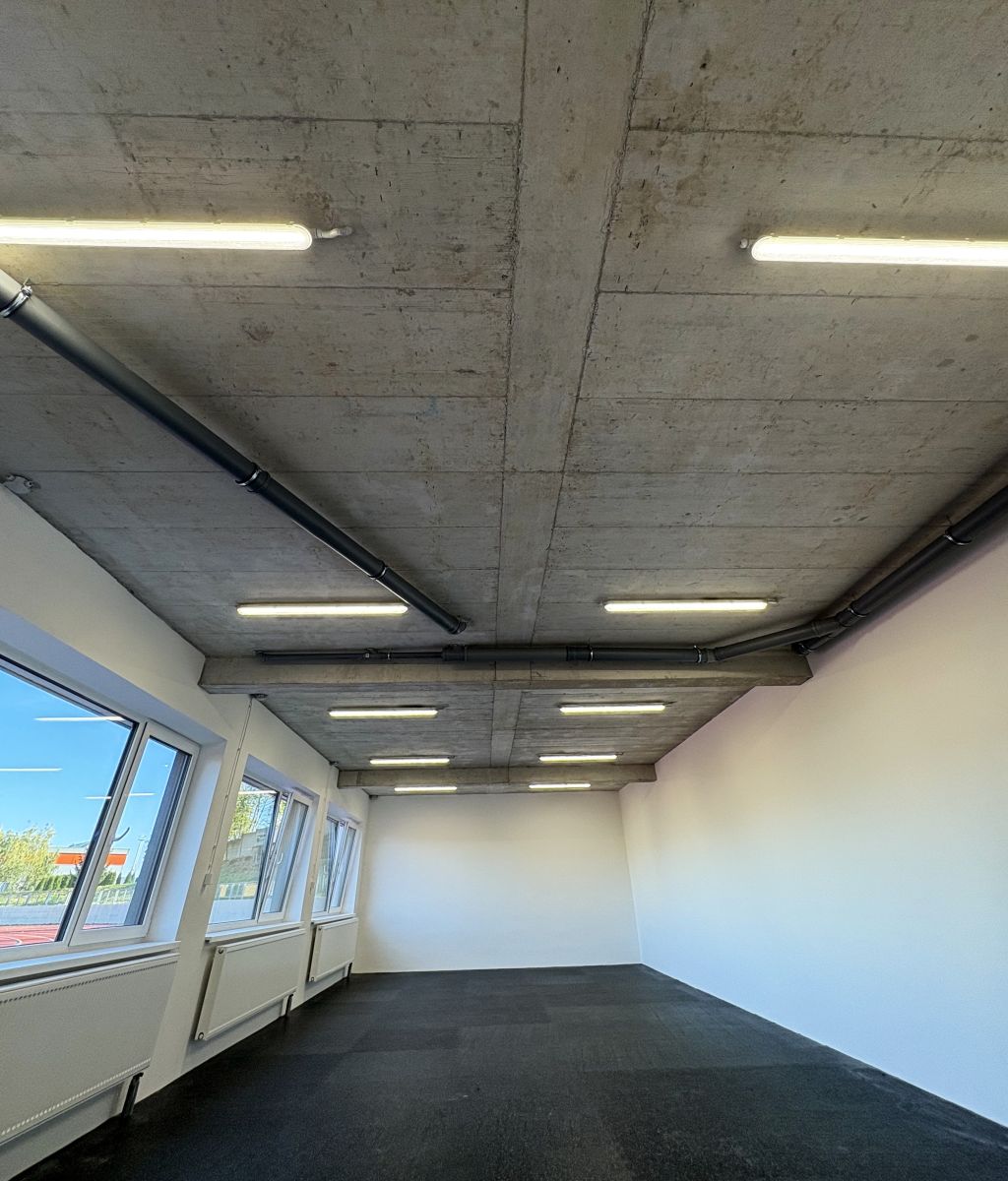 Použili jsme kombinaci úsporných LED panelů a průmyslových svítidel, které zvládnou každodenní tréninkový nápor i vysokou vlhkost v zázemí. Na venkovní osvětlení budovy jsme použili LED pásky s vysokým stupněm krytí a večer díky nim stadion září moderním a stylovým dojmem.