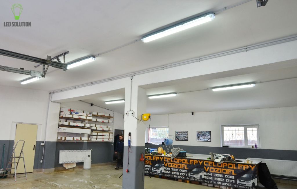 LED svítidly byly osvětleny také přilehlé prostory sloužící jako automyčka. Díky krytí IP65 jsou svítidla odolná proti prachu a vodě.
