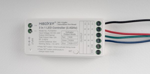 Eine sehr ähnliche Funktion erfüllen Controller für RGB-, RGBW- oder CCT-Farb-LED-Streifen. Neben dem Dimmen können Sie damit auch die Farbe oder Farbtemperatur des Lichts steuern.