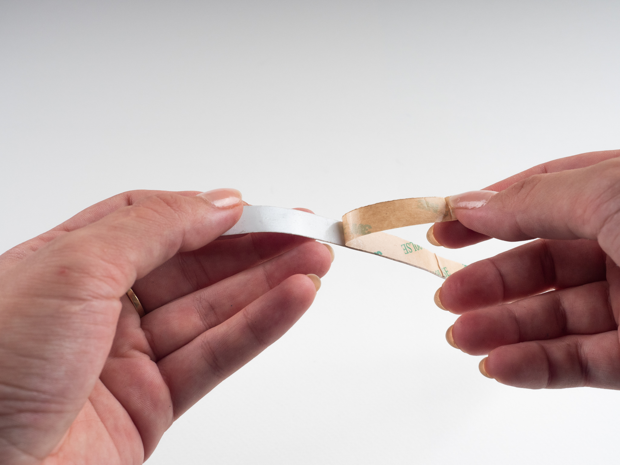 Der Streifen muss fest auf der Oberfläche haften. Es wird außerdem empfohlen, die Oberfläche vor dem Anbringen des Streifens zu entfetten.