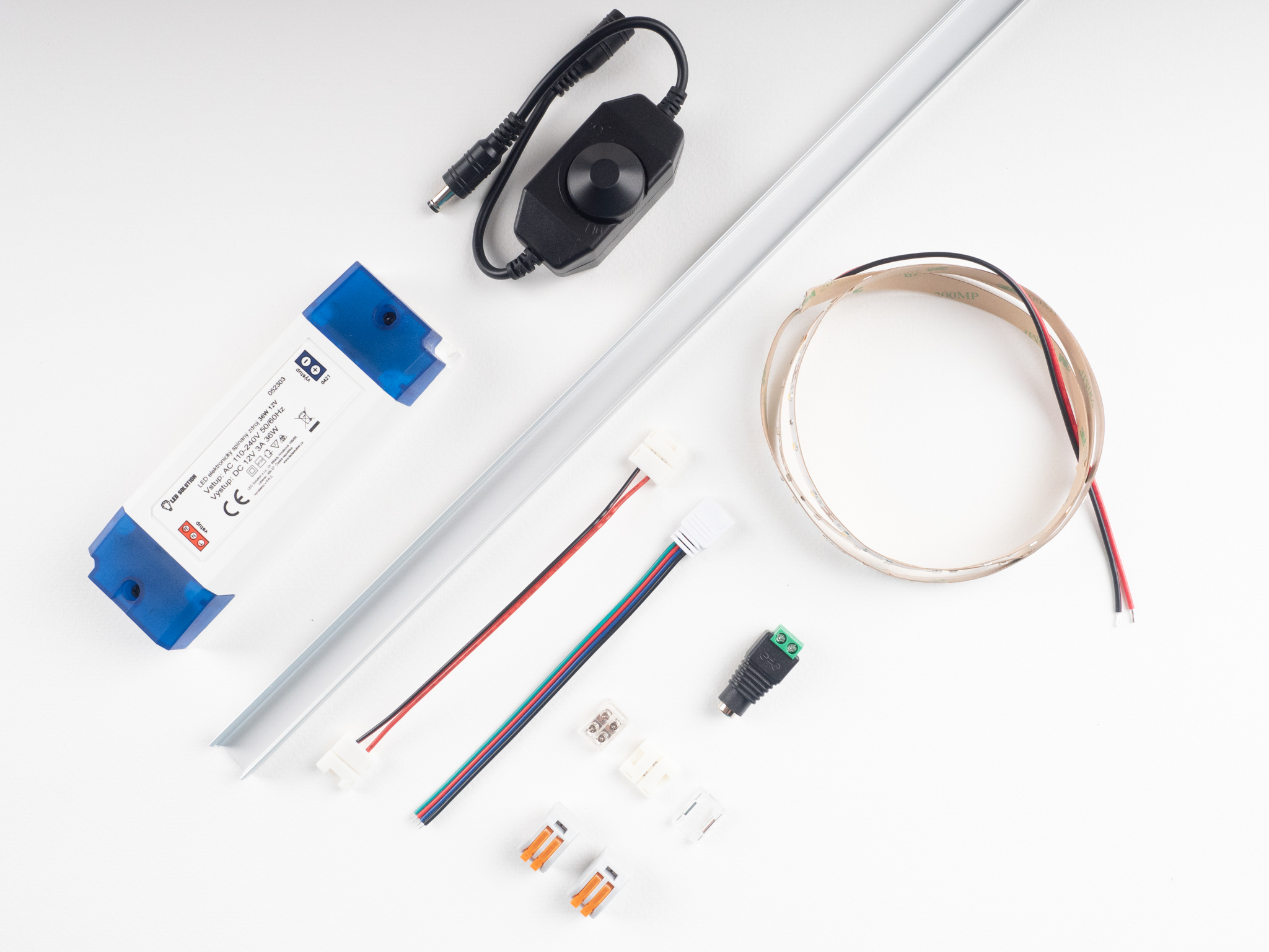 - Dimmer - wenn Sie den Streifen steuern möchten, sind zusätzliche Steuerungskomponenten erforderlich