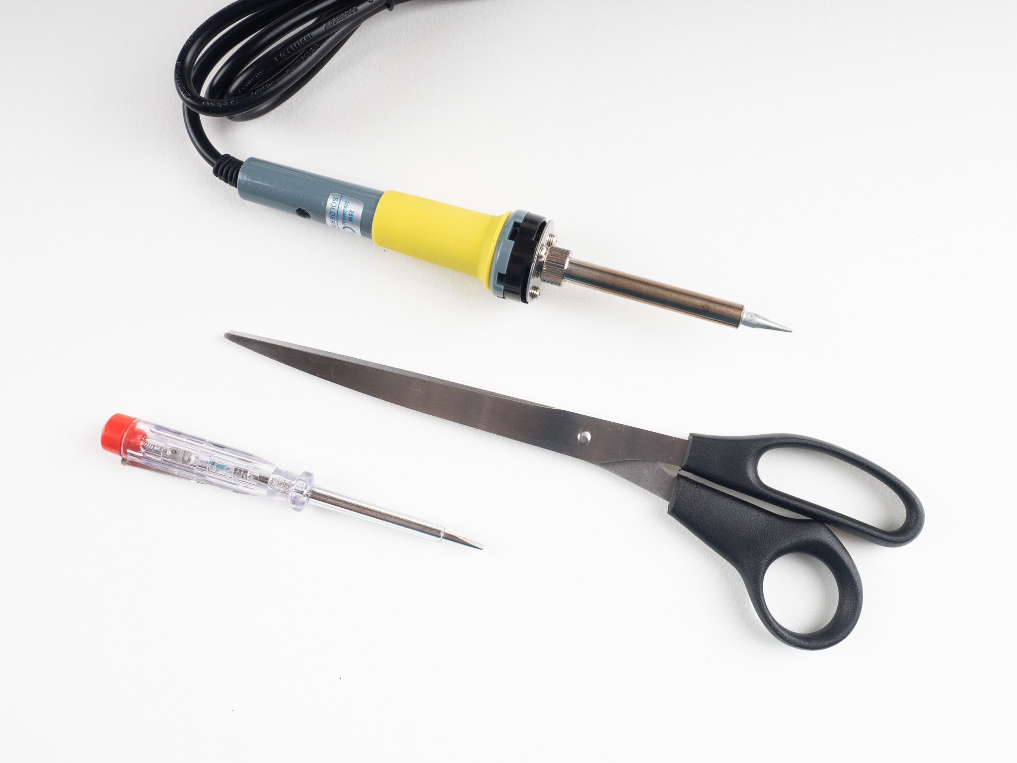 Das Löten ist nicht kompliziert, und wir wagen zu behaupten, dass fast jeder es lernen kann. Für eine hochwertige Verbindung wird ein moderner Lötkolben mit feiner Spitze empfohlen. Ältere Transformator-Lötkolben sind für diese Art von Arbeit nicht präzise genug, und außerdem besteht die Gefahr, dass bestimmte Komponenten beschädigt werden (z. B. ein Touch-Dimmer, der in einem Profil installiert ist).
