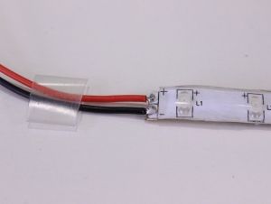 Wenn Sie einen LED-Streifen mit IP-Schutz löten möchten, müssen Sie zunächst das Schutzgel entfernen. Nach dem Löten muss der Streifen wieder ordnungsgemäß versiegelt werden, um die Schutzart aufrechtzuerhalten. In den meisten Fällen wird ein Schrumpfschlauch verwendet, der sich bei Erwärmung zusammenzieht.