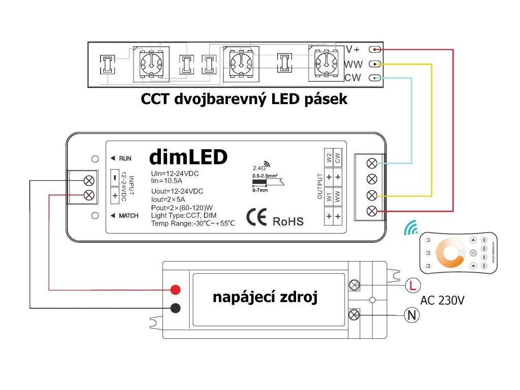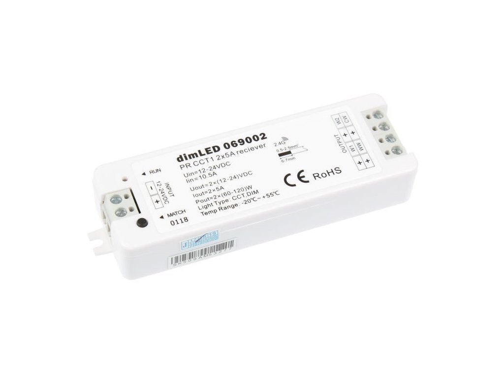 Der Empfänger ist voll kompatibel mit allen CCT-Fernbedienungen der dimLED-Serie, die ein stufenloses Umschalten zwischen warmweißer und kaltweißer Farbe ermöglichen. An einen Empfänger können bis zu zehn verschiedene Fernbedienungen gleichzeitig gekoppelt werden, was eine bequeme Steuerung von verschiedenen Orten aus gewährleistet. Wenn Sie mehrere LED-Streifen separat steuern müssen, ist für jeden Kreis ein separater Empfänger erforderlich.