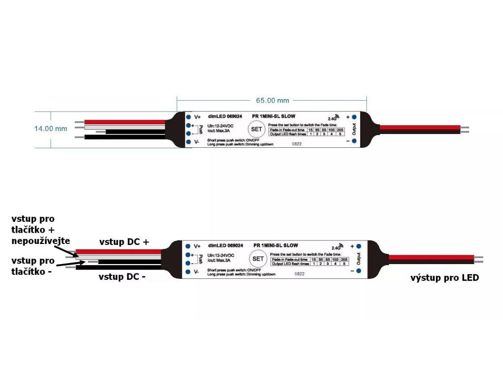 Funkempfänger ist für die kabellose Steuerung von LED-Streifen und anderen Niederspannungs-LED-Systemen bestimmt. Neben der Steuerung über Fernbedienungen ermöglicht er auch das manuelle Schalten mit einem angeschlossenen Taster, dank der Ausgangskabel direkt am Gehäuse des Empfängers. Diese Kombination ermöglicht eine bequeme Steuerung der Beleuchtung entweder über eine zentrale Fernbedienung oder einen klassischen Taster, der beispielsweise unter einem Schalter installiert ist.