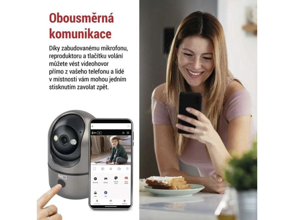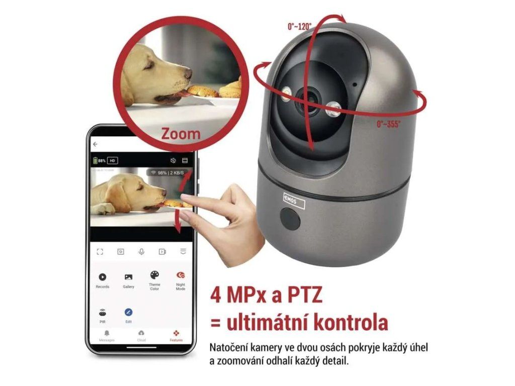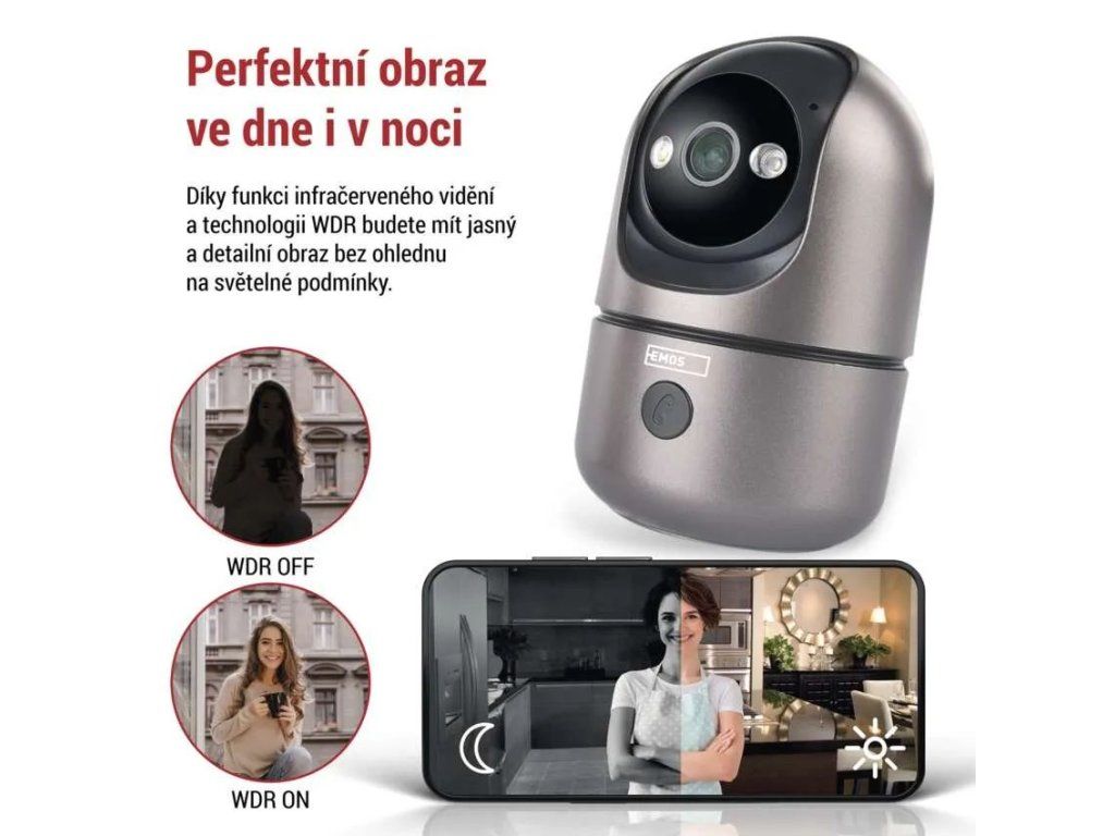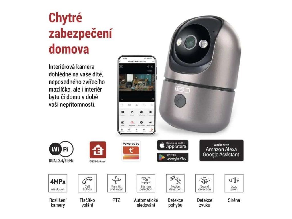 Die Kamera verbindet sich über WLAN und unterstützt sowohl das 2,4-GHz- als auch das 5-GHz-Band. Die Steuerung erfolgt über die mobile EMOS GoSmart App, die kostenlos für Android und iOS erhältlich ist und die Überwachung von überall ermöglicht. Selbstverständlich ist die Kompatibilität mit TUYA-Plattformen und den Sprachassistenten Google Assistant und Amazon Alexa gegeben.