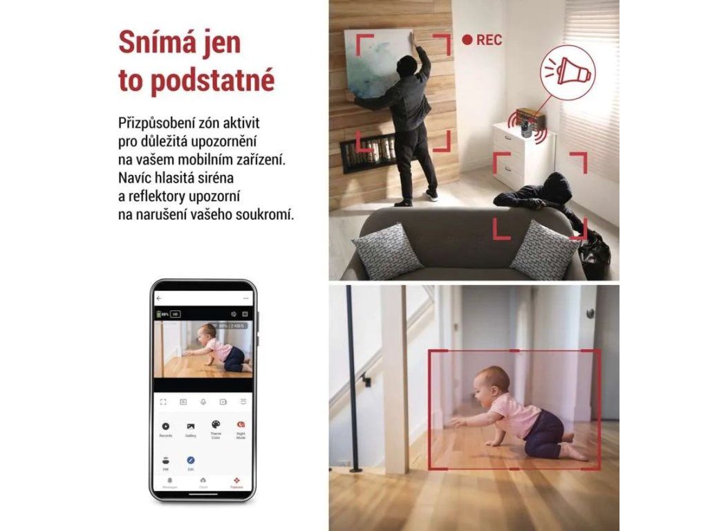 Die integrierte Bewegungserkennung und Geräuscherkennung benachrichtigt sofort über ungewöhnliche Aktivitäten durch Benachrichtigungen in der mobilen App. Zur Erhöhung der Sicherheit ist die Kamera mit einer lauten Sirene ausgestattet, die bei Eindringen in den Bereich automatisch ausgelöst werden kann. Dank der Möglichkeit, Überwachungszonen einzurichten, können Sie genau definieren, was die Kamera überwachen soll.