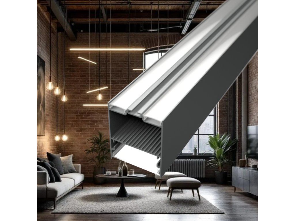 Dieses Aufhängungsprofil aus Aluminium ist eine universelle Lösung für moderne Innenräume. Es kann für abgehängte, aufgesetzte und Gipskartonmontagen verwendet werden und bietet eine Kombination aus direkter und indirekter Beleuchtung. Dank des geräumigen Hohlraums können Netzteil und Dimmer direkt im Profil untergebracht werden, was für eine saubere und minimalistische Installation sorgt.