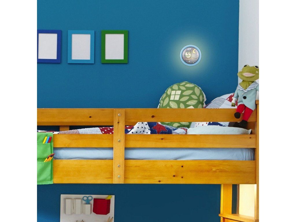 Kinder-Wand-LED-Leuchte Shepherd bringt zauberhaftes Design und praktische Beleuchtung ins Kinderzimmer. Sein Kunststoffgehäuse ist leicht und sicher, mit einem Durchmesser von 100 mm ideal für kleinere und größere Räume. Das Design der Leuchte ziert ein niedliches Bild einer Eule, die auf einem Ast unter dem Nachthimmel sitzt, ergänzt durch einen lächelnden Mond und Wolken. Dieses Motiv belebt jedes Kinderzimmer und schafft eine angenehme Atmosphäre zum Schlafen oder für ruhige Abendstunden.
