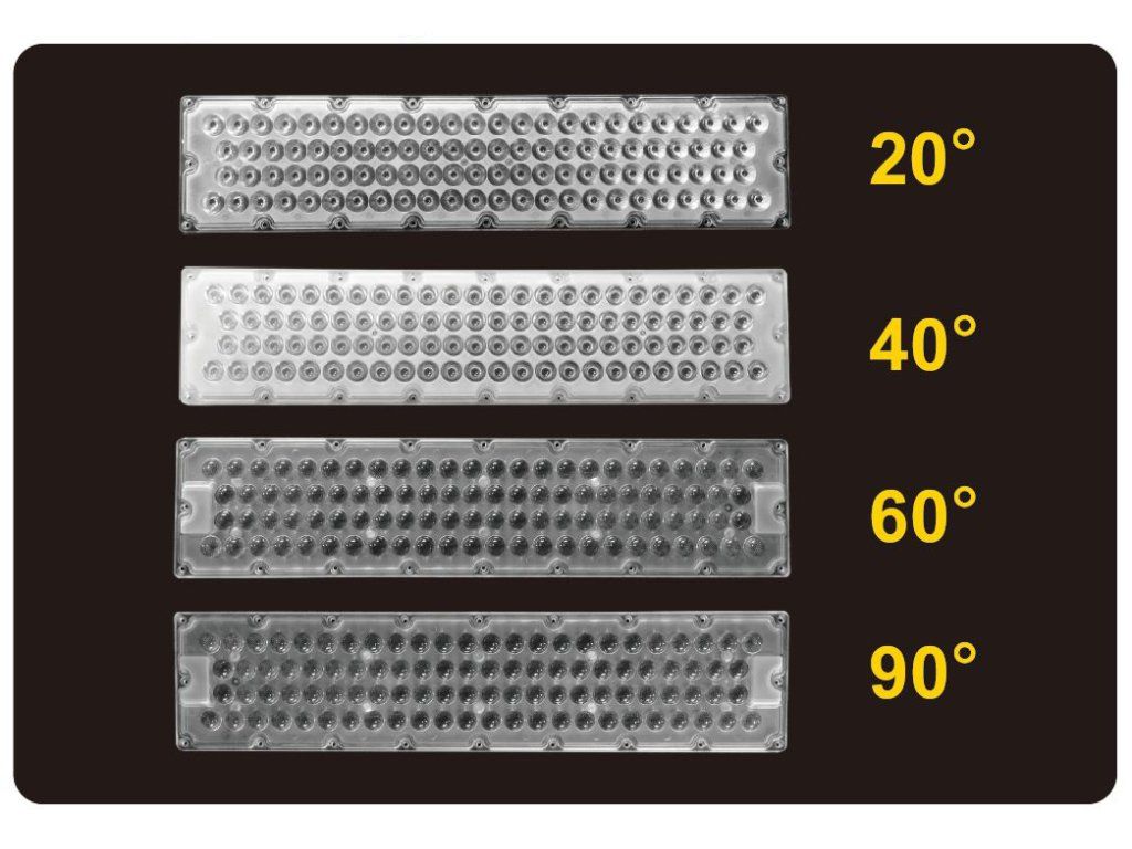 Der Strahler ist standardmäßig mit einer Linse mit einem Abstrahlwinkel von 90° ausgestattet, die sich für die universelle Ausleuchtung von Spielfeldern, Plätzen oder größeren Außenbereichen eignet. Gegen Aufpreis kann die Linse ausgetauscht und eine Variante mit einem Winkel von 20°, 40° oder 60° gewählt werden, sodass der Lichtstrom genau an die Charakteristik der beleuchteten Fläche angepasst werden kann.
