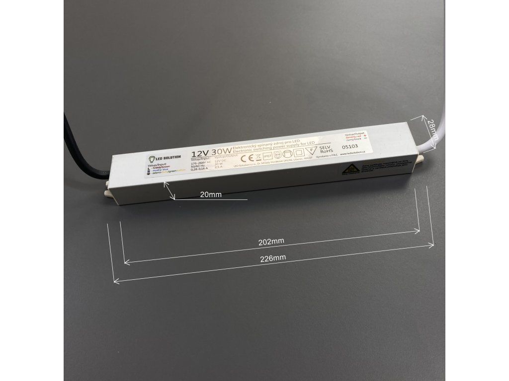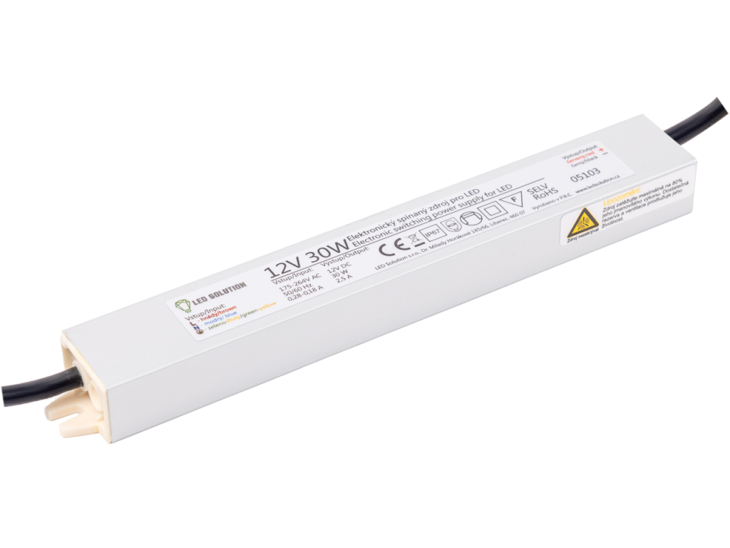 Hochwertige wasserfeste Stromversorgung (Trafo) für LED-Streifen. Die kundenspezifische Produktion für den tschechischen Vertrieb garantiert erstklassige Qualität. Die Netzteile haben eine IP-Schutzart, wodurch sie gegen jegliche Feuchtigkeit, Wasser oder Staub beständig sind.