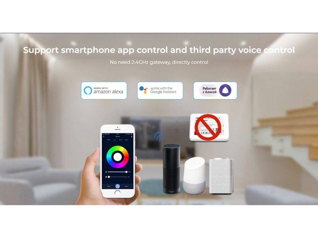 Der Empfänger unterstützt die Sprachsteuerungsassistenten Amazon Alexa und Google Assistant. ohne dass ein 2,4-GHz-Gateway gekauft werden muss.