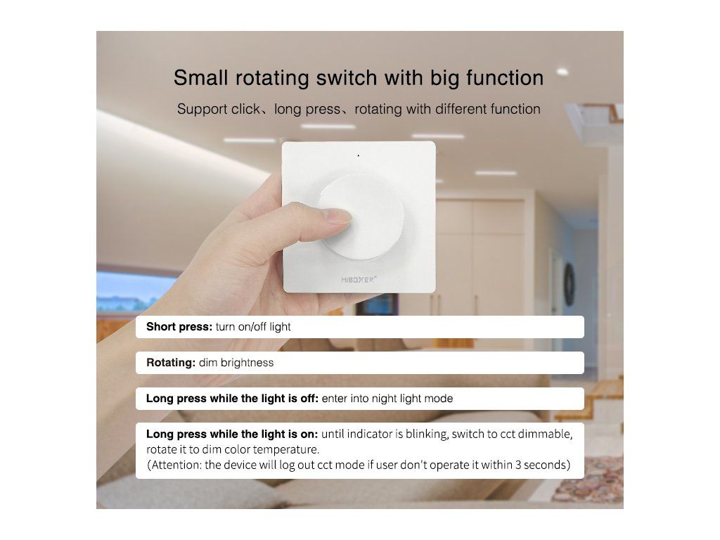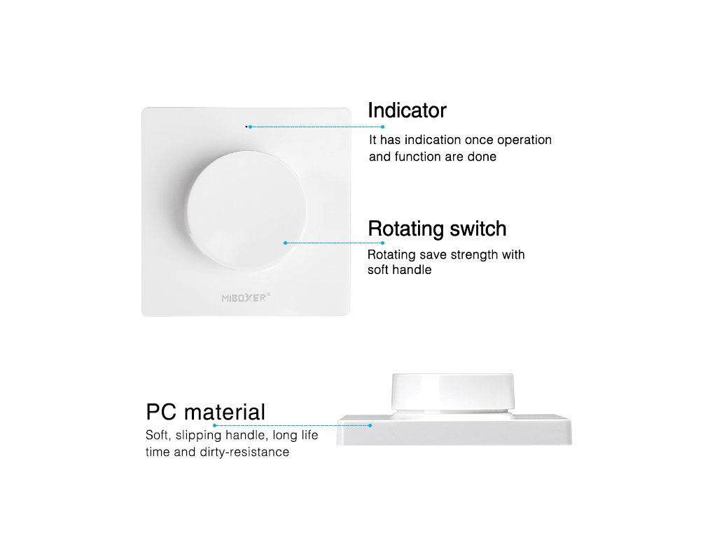 Mi-Light RF Wandfernbedienung mit Drehregler für einfarbige und CCT LED-Streifen, 1-Kanal