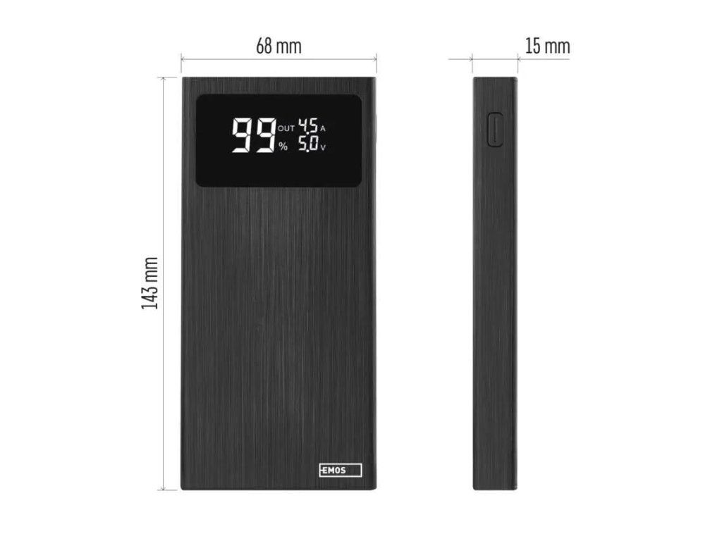 EMOS Powerbank ist ein erstklassiges Beispiel für ein tragbares Ladegerät, das Ihre Bedürfnisse zu Hause und unterwegs erfüllt. S Kapazität von 10.000 mAh bietet ausreichend Energie zum Aufladen Ihrer Geräte wie Smartphones, Tablets, E-Reader und mehr.