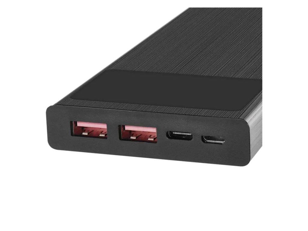 Diese Powerbank ist mit integrierten Schutzfunktionen ausgestattet, die Ihre Geräte vor Tiefentladung, Überladung, Überlastung und Kurzschlüssen schützen und so ein sicheres und zuverlässiges Aufladen gewährleisten. Außerdem verfügt sie über mehrere USB-Anschlüsse, mit denen Sie mehrere Geräte gleichzeitig aufladen können. Sie können 2× USB-A, 1× USB-C am Ausgang und 1× micro USB und 1× USB-C am Eingang nutzen. Zwei USB-Kabel (micro USB + USB-C) sind im Lieferumfang enthalten.