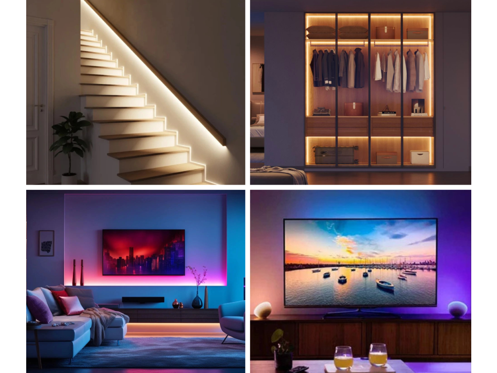 Häufigste Anwendung dieses Streifens: dekorative Beleuchtung von Wänden, Räumen, Schaufenstern, Ausstellungen, Bars.