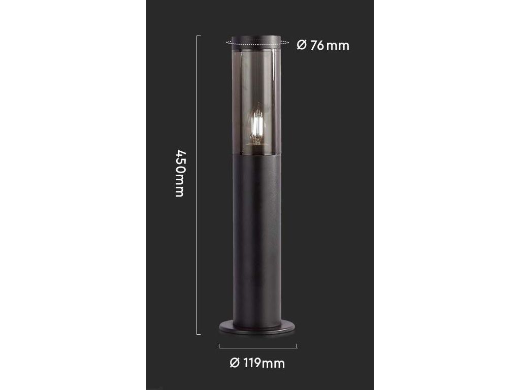 Schwarz Gartenpollerleuchte für Glühbirnen E27 45cm