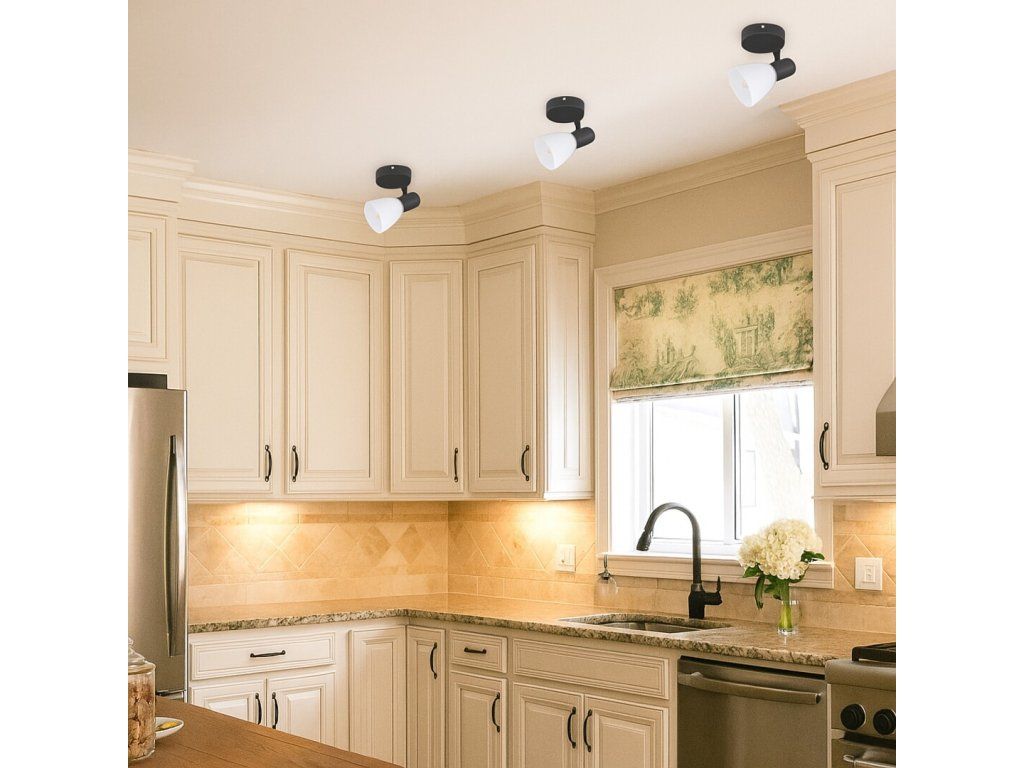 Der schwarze Deckenstrahler Soma bietet ein zeitloses Design und die praktische Möglichkeit, das Licht genau dorthin zu lenken, wo es benötigt wird. Das Metallgehäuse in Mattschwarz ist mit einem weißen Glasschirm versehen, der einen angenehmen Kontrast bildet und gleichzeitig für eine sanfte Lichtstreuung sorgt. Dank seiner kompakten Abmessungen und des einfachen runden Sockels lässt sich die Leuchte leicht in moderne und klassisch eingerichtete Innenräume integrieren und eignet sich als Zusatzbeleuchtung für Wohnzimmer, Schlafzimmer, Flur oder die Arbeitsecke.