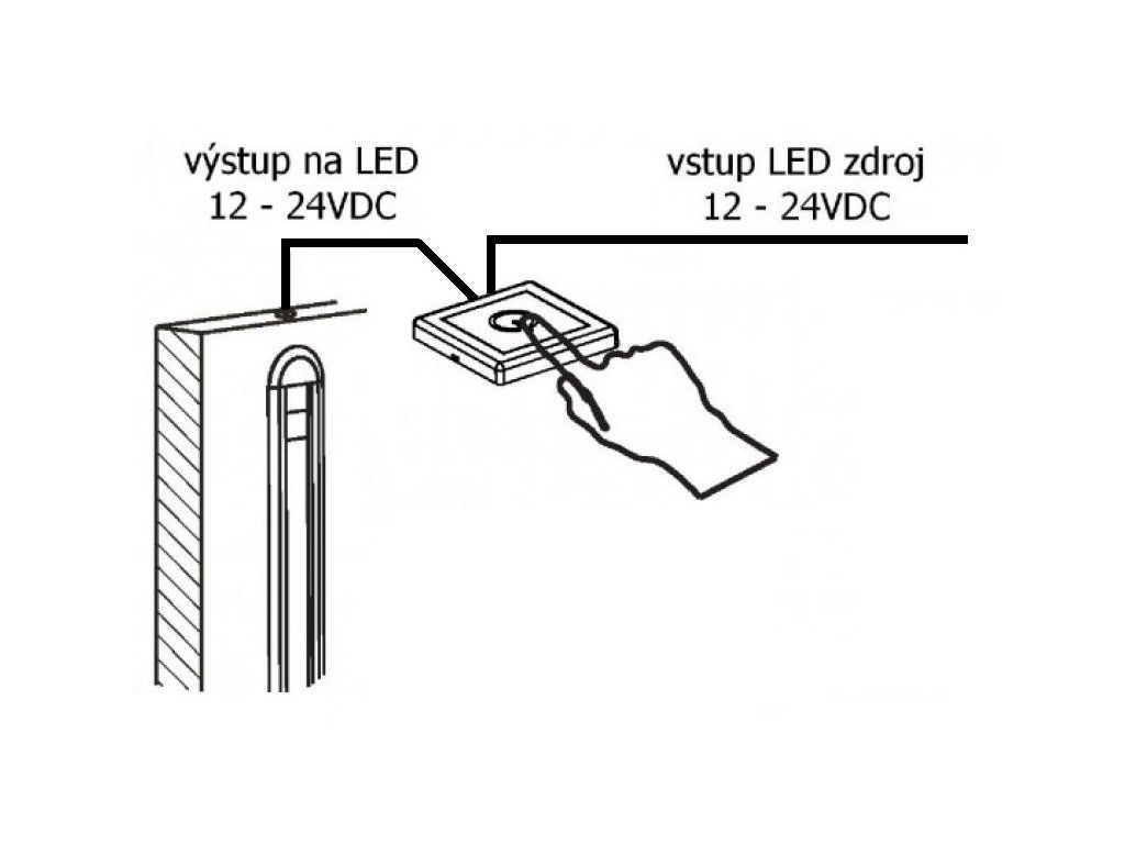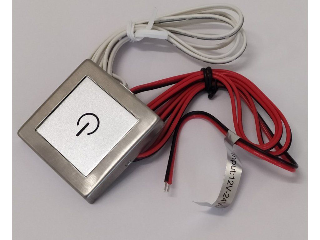 Der Touch-Dimmer kann mit jeder Lichtquelle oder jedem anderen Verbraucher mit einer Betriebsspannung zwischen 12V und 24V verwendet werden. Er dient zum Ein-, Ausschalten und zur Helligkeitsregelung. Durch Berühren des Sensors wird die Lichtquelle aus- oder eingeschaltet, zum Verringern oder Erhöhen der Lichtintensität muss der Sensor gedrückt gehalten werden.