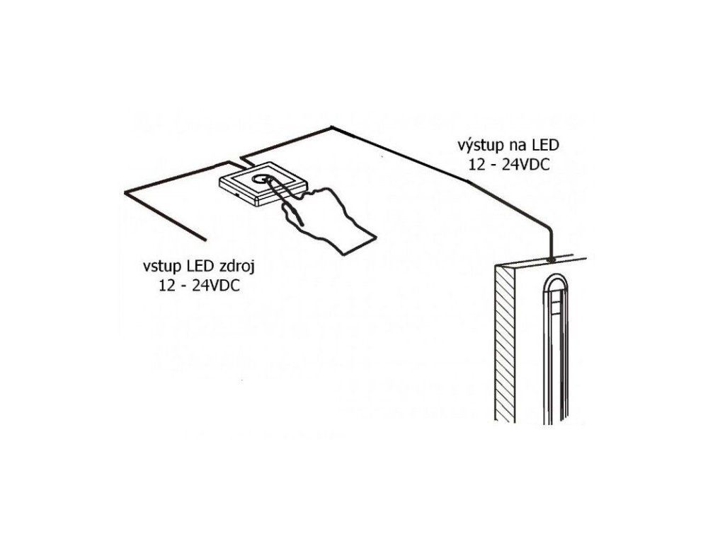 Der Touch-Dimmer kann mit jeder Lichtquelle oder jedem anderen Verbraucher mit einer Betriebsspannung zwischen 12V und 24V verwendet werden. Er dient zum Ein-, Ausschalten und zur Helligkeitsregelung. Durch Berühren des Sensors wird die Lichtquelle aus- oder eingeschaltet, zum Verringern oder Erhöhen der Lichtintensität muss der Sensor gedrückt gehalten werden.