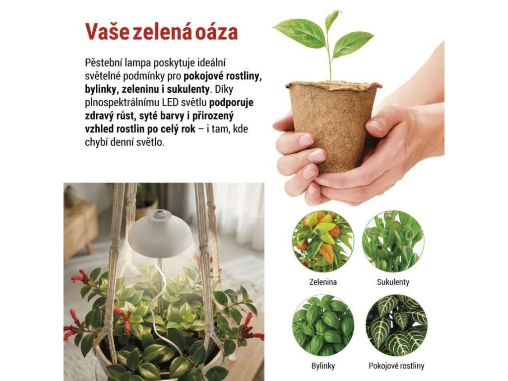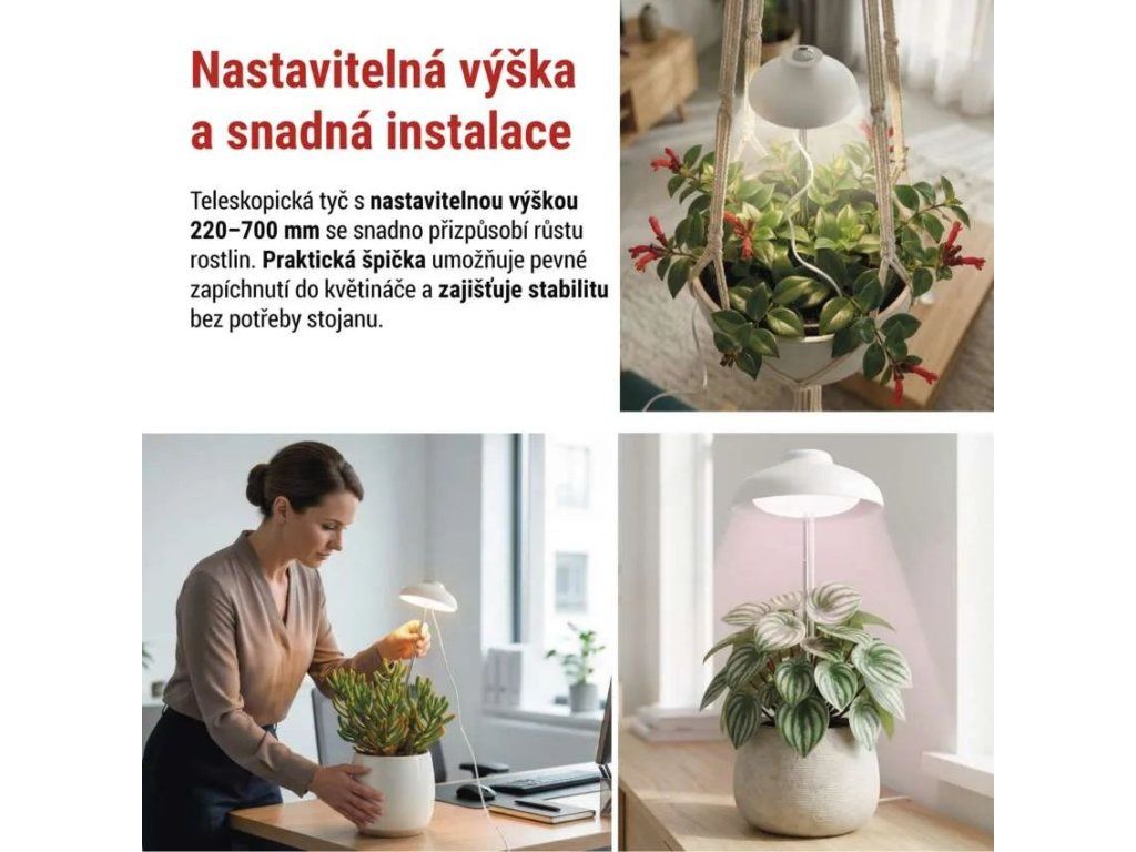 Die LED-Pflanzenlampe ist eine kompakte und elegante Lösung zur Unterstützung des Wachstums von Zimmerpflanzen, Kräutern, Gemüse und Sukkulenten. Es versorgt die Pflanzen mit dem Licht, das sie brauchen wo immer natürliches Tageslicht fehlt, und trägt dazu bei, ihr gesundes Aussehen, ihre festen Blätter und ihre satten Farben das ganze Jahr über zu erhalten, auch in den Wintermonaten oder in dunkleren Räumen.