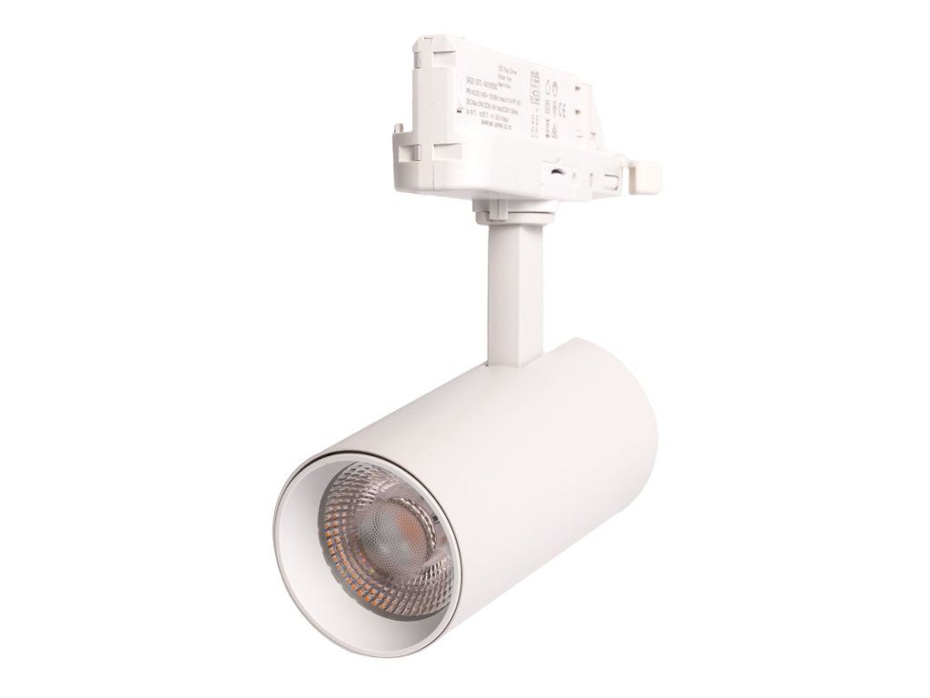 Dieser weiße Schienen-LED-Strahler mit 20W Leistung ist für die Global Track Schiene bestimmt. Er dient als Ersatz für halogenbetriebene Schienenstrahler, die sich erwärmen und einen vielfach höheren Stromverbrauch haben. LED-Schienenstrahler emittieren keine UV- oder Infrarotstrahlung.